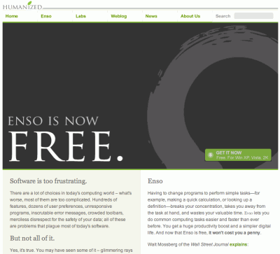 Humanized.com網(wǎng)站近乎完美地運用了注意力法則。 這個頁面中用戶唯一立即可見的內(nèi)容是“免費”(FREE)的大字,它以一種迷人且漂亮的方式呈現(xiàn),但本身也是一種非常有用的信息。下面的文字則為用戶如何獲得“免費”的產(chǎn)品提供了足夠詳細(xì)的說明。